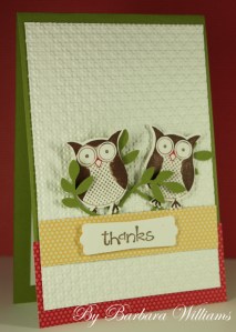 I do hope you like my little owls, its one of the free stamp sets you can get for spending just $100.00 on your order. I am waiting for your order…lol.