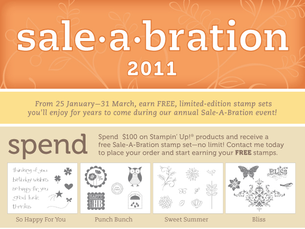 The most wonderful time of the Stampin’ Up! year is finally here – Sale-a-Bration! Click HERE to view this year’s selection of FREE stamp sets, and to read all about how Sale-a-Bration works. This year’s selection is fabulous. So for every $100 you spend on Stampin’ Up! Products you get to pick a FREE Sale-a-Bration stamp set.