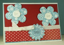 I have used the colours of Cherry Cobbler and Marina Mist on Whisper White Cardstock.  I also used the Perfect Polka-dots Embossing Folder and displayed the reverse side.