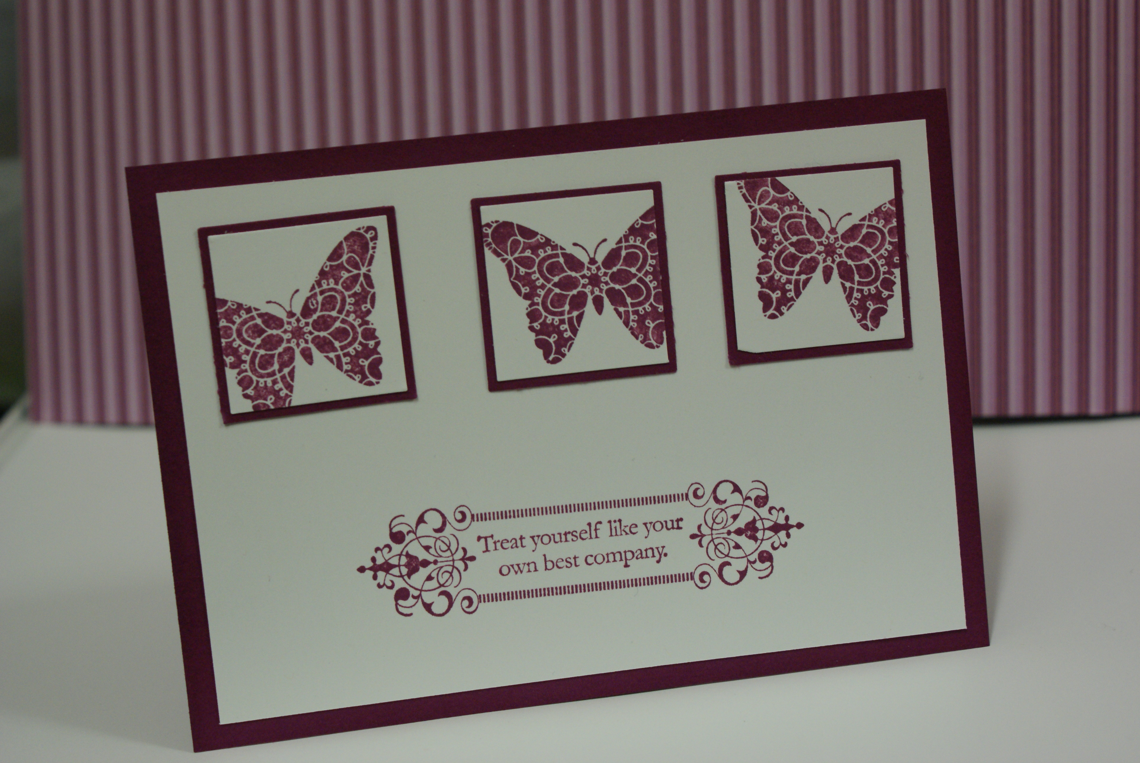 The colours used are Rich Razzleberry and Whisper White.  I used Stampin Up square punches to punch out the two layer squares, very easy.  Enjoy