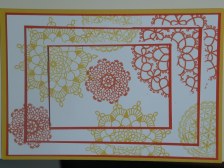 I have seen lots of cards made with this triple layer effect. It’s just so easy to create a quick card that looks so effective. I choose the Delicate Doilies set, no 122592 on page 110 of the new 2012-2013 Catalogue, $29.95.