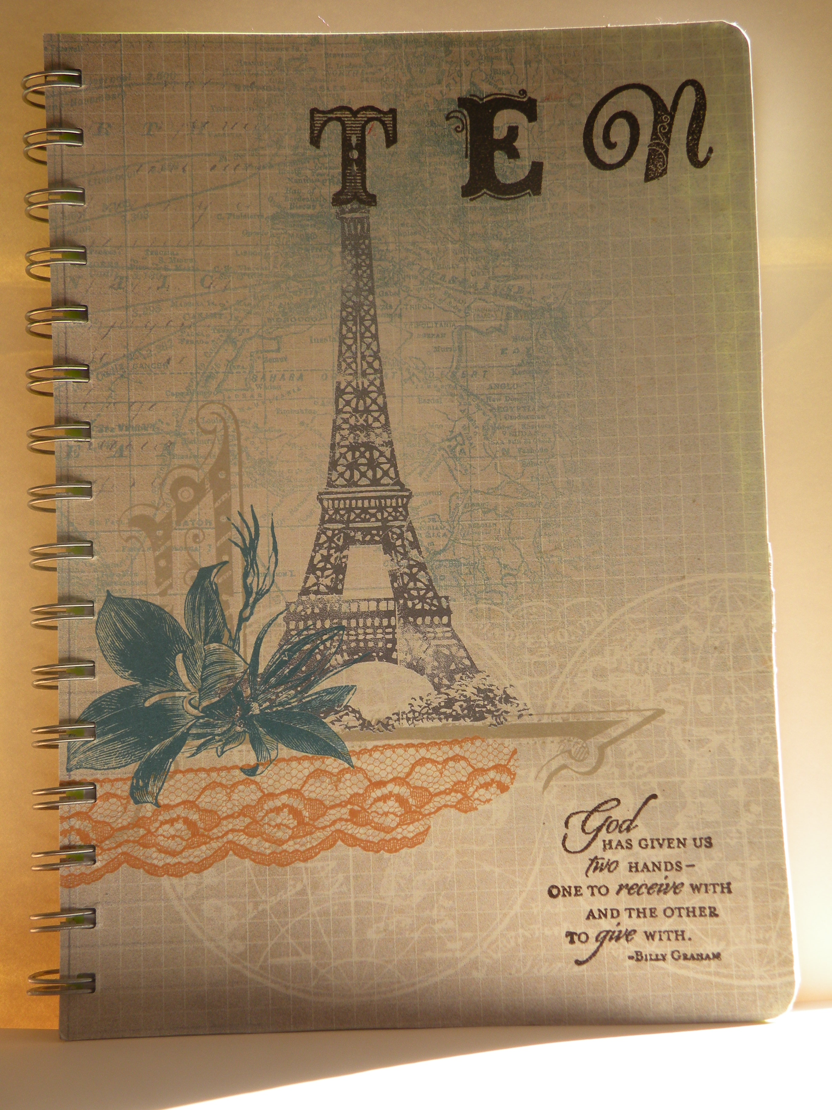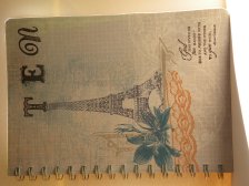 Both the name and greeting were embossed with the New Espresso Embossing Powder. Just a little suggestion of you buy a cheap book with a plastic cover, PLEASE emboss your paper before attaching to the cover, the heat gun just loved trying to curl my front page.