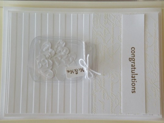 I Hope you enjoy this card, it’s a little unusual I know, but you can see all the little love hearts stored in my jar. don’t you love the jar, its been stamped with the Craft white ink and then I used the Framelits to cut the jar out. I also used an embossing folder as a background to the jar.
