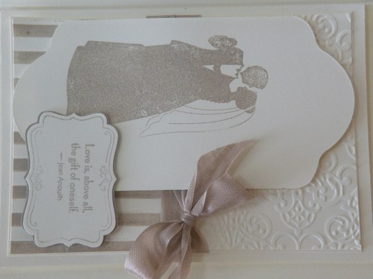 For now I am showing you a card that I had made some time ago using the Marry Me stamp set. I used both Crumb Cake and Very Vanilla, trimmed with Seam Binding in Crumb Cake.