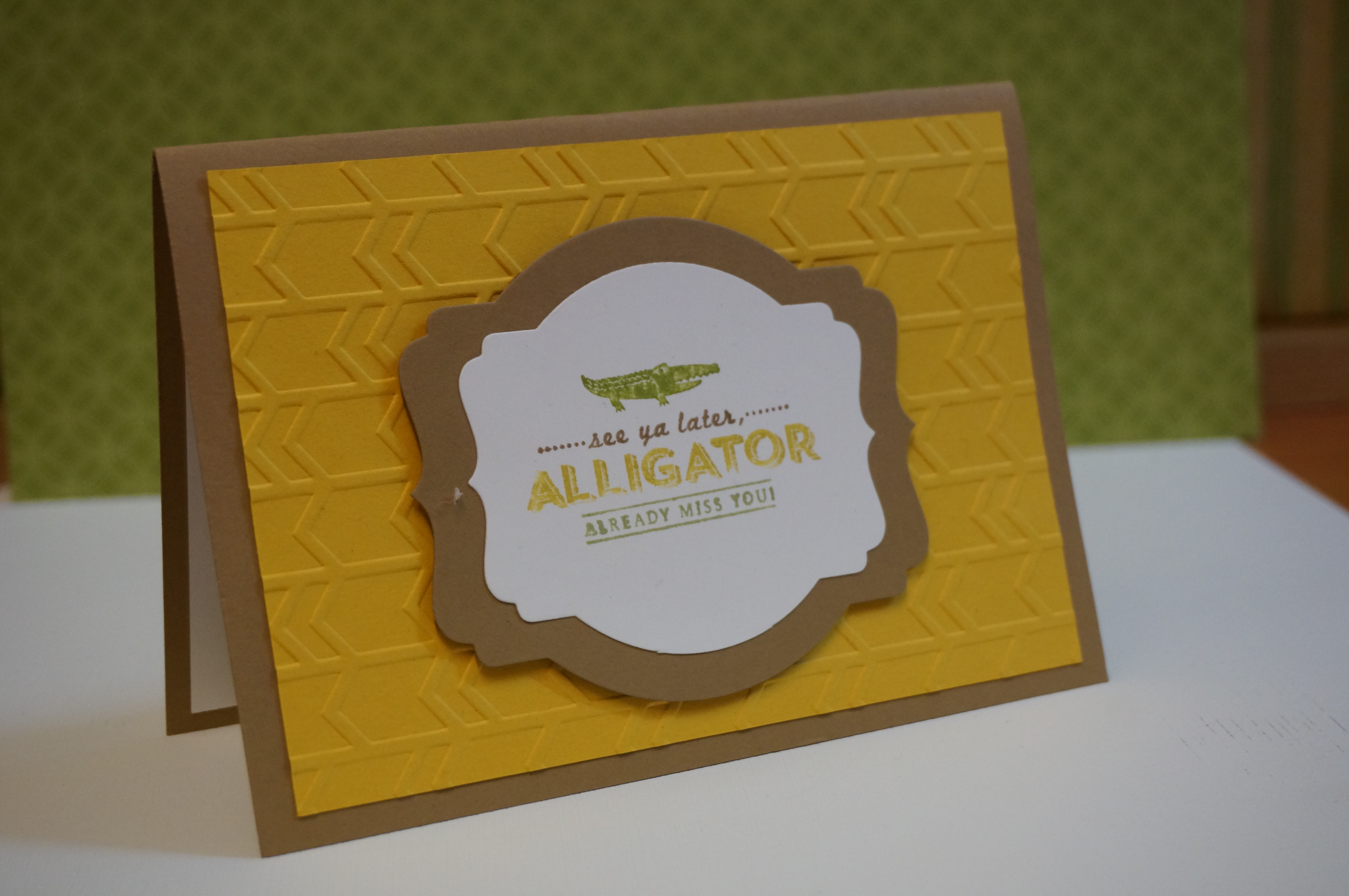 Want a stamp set that is a classic? I remember as a little girl my dad saying as he went out to work on the farm, See Ya Later, Alligator. I would answer, in a While crocodile. So you can imagine how exited I was to have this stamp set.