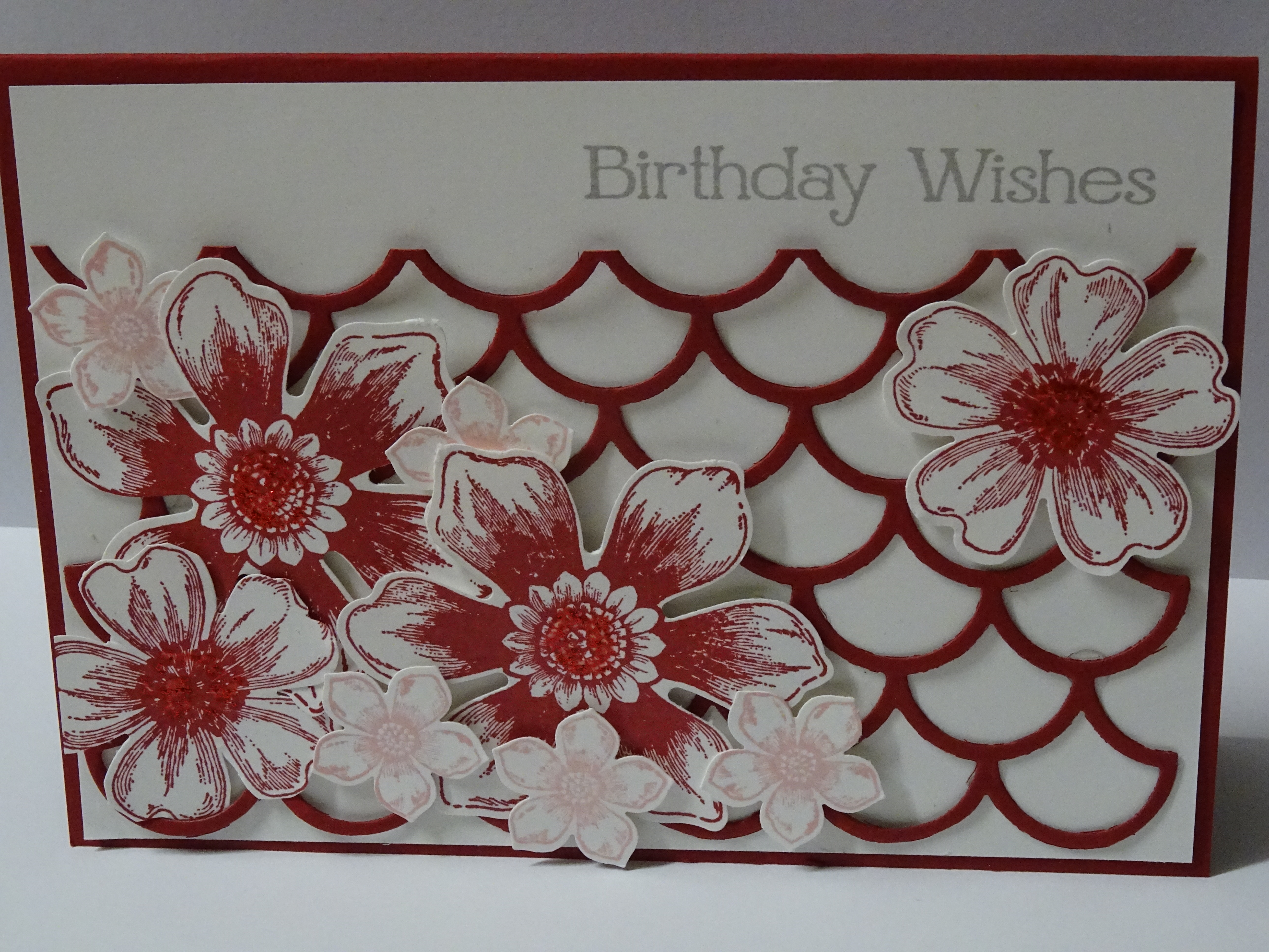 I stamped some flowers out in Cherry Cobbler using the Beautiful Bunch and Flower Shop, then inking up Petite Petals in Blushing Bride. Such a easy and quick card to make.