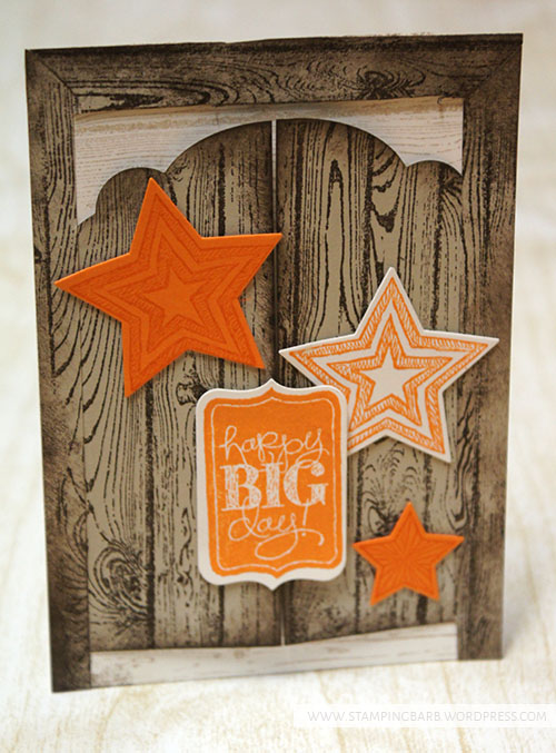 Do you want to know how we made it? Yeap of course you do. Firstly stamp the palings on a sheet of cardstock, then using your oval accent Bigz Clear Die, cut out the shape, this will become your door, so you need have the door to open, just cut it in the middle and some of the bottom of it. Now it looks like a saloon door don’t you think? You will need to stamp and cut out some pieces to make the door frame. I used some of my off cuts from other projects.