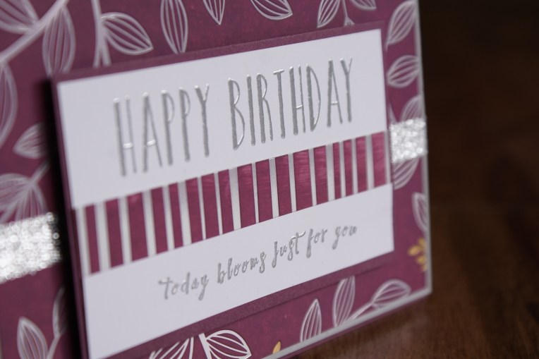 I decided to go with the beautiful paper that is in the second release of Sale-a-Bration and coloured it with fresh fig straight from the ink pad. Then wiped it off with a tissue removing some of the ink, but allowing the beautiful silver and gold to show through.