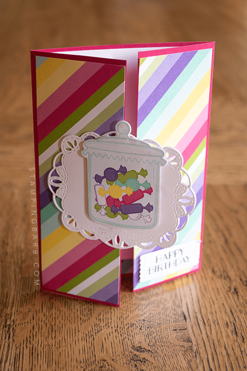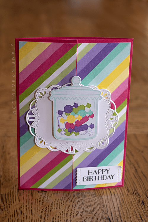 I decided to use the beautiful papers from the Sweetest Thing Suite, love the vibrant colors and the fact that I was able to use the dies to cut the lolly jar from the paper as I was after a quick card for this hop, due to running classes all weekend. wow how lucky am I that I have so many friends that love card making.
