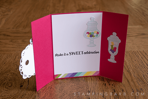 The inside I used two more of the cut outs from the papers. and the “Make it a Sweet celebration.