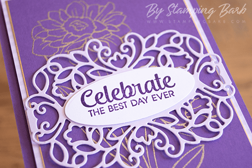 I choose to use the beautiful Band Together Stamp Set and the Detailed Bands Dies, I thought that the top and bottom of the stunning die, was perfect to get the fancy edges and the Celebrate the Best Day Ever perfect the for greeting.