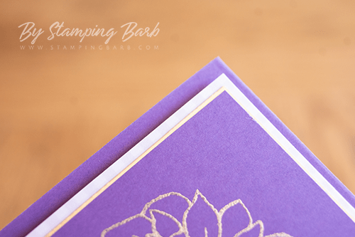 The greeting was heat embossed using clear embossing powder, but wait, its Purple you said? yes I stamped it onto a piece of what cardstock using the Gorgeous Grape ink and my Stamparatus to position it perfectly which then allows me to go back and using VersaMark, stamp and then add my clear embossing powder.