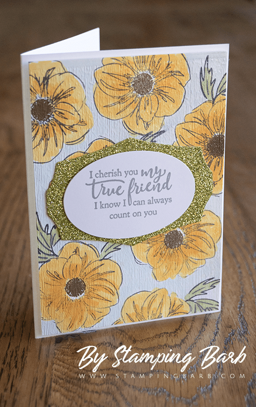 To a Wild Rose, one of my favourite stamp sets, plus it comes with dies. This sentiment in the stamp set is grate to sent to a friend. “I cherish you, my true friend, I know I can always count on you.”