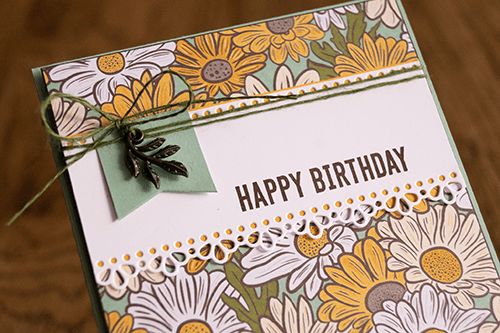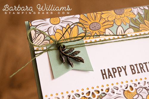 I stepped the card up a little by adding this leaf embellishment from Bird Ballad Trinkets over the banner tag.