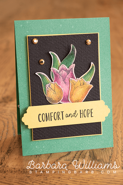 I also used the Comfort and Hope stamp set for the greeting on the front and the inside. I have been sending lots of cards of late. Thought this was a handy one to have.