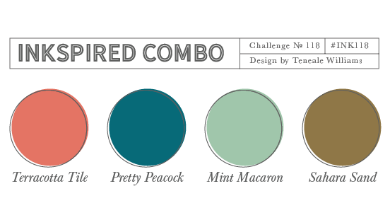 Colours are Terracotta Tile, Pretty Peacock, Mint Macaron and/or Soft Suede and the stamp set I choose was Tasteful Touches.