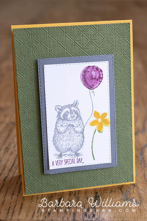 I decides to use the cute little Raccoon from the Special Someone Stamp set and whilst I didn’t use the dies you can get them.