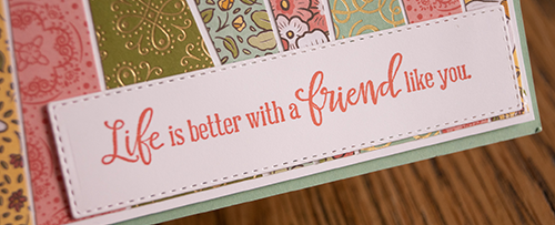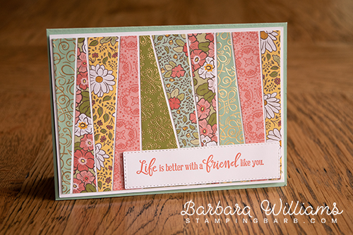 I took small stripes from the designer paper, Tidings of Christmas, stacked them on top of each