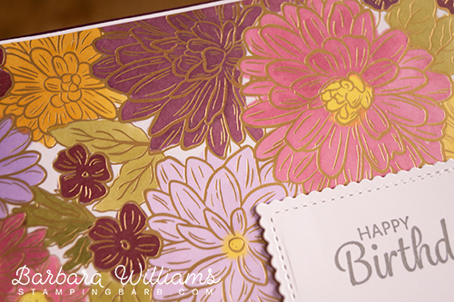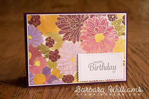 I used the following ink colors of Cherry Cobbler, Misty Moonlight, Soft Succulent and Evening Evergreen and did a random stamping of the Star over the whole card front.