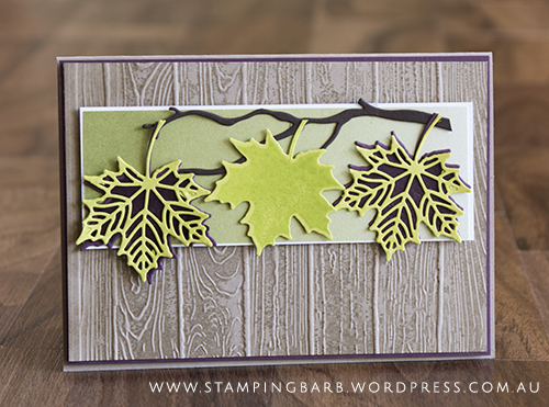 I rather love the branch out of the Seasonal Layers Thinlits, thought it gave another diminution to my projects. I stamped the Enjoy today with and then heat embossed using the beautiful Cooper embossing power. It really pops, don’t you think?