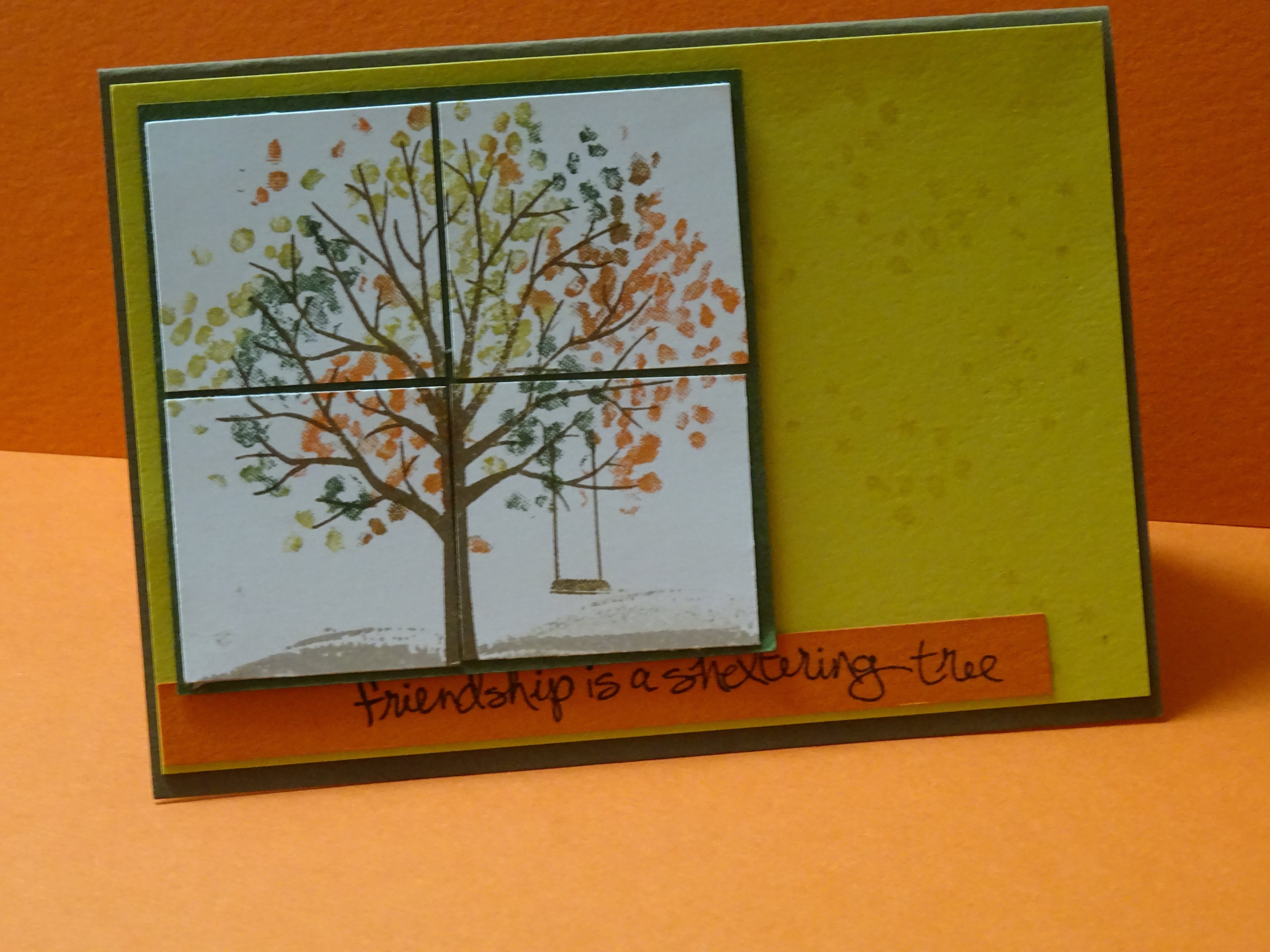 My choice of stamp set was from the new Occasions Catalogue, just released on the 6 January to 2 June 2015, I just love it. There are so many gorgeous things to make in it. I choose to use the beautiful stamp set on page 22 called “Sheltering Tree” I can relate to this as I often feel like I am the tree that shelters everyone. Anyway its a fun stamp set and I had a great time making it.