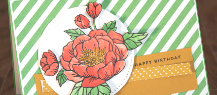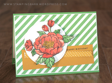I used to color the branch was the light crumb cake for the branch and touches of light old olive on the leaves with some shading of the crumb cake on the leaf. The little frog was Pineapple Punch with a small touch of Old Olive on this trunk.